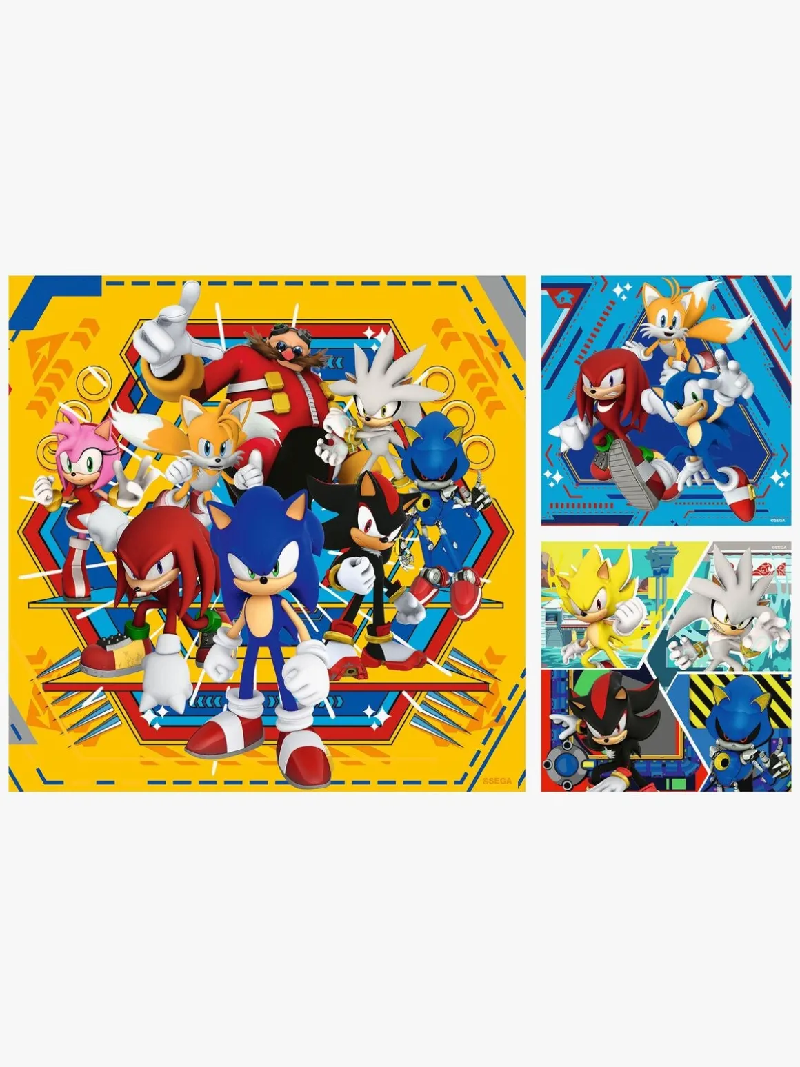 – Indeholder 3 puslespil med 49 brikker i hvert.