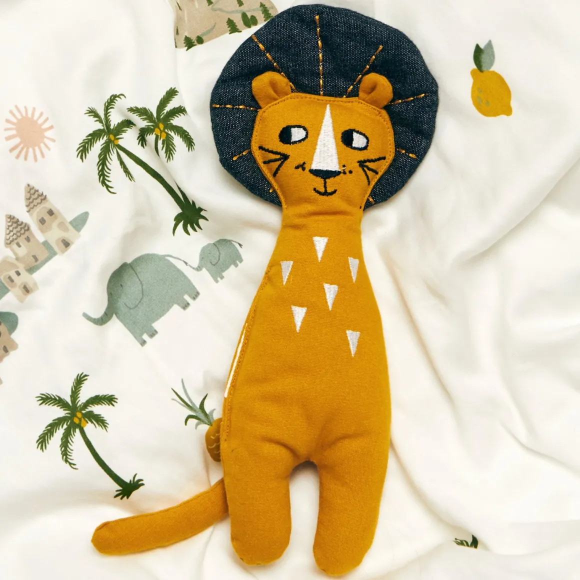 | Materiale | Stof: økologisk bomuld. Polstring: polyester. |