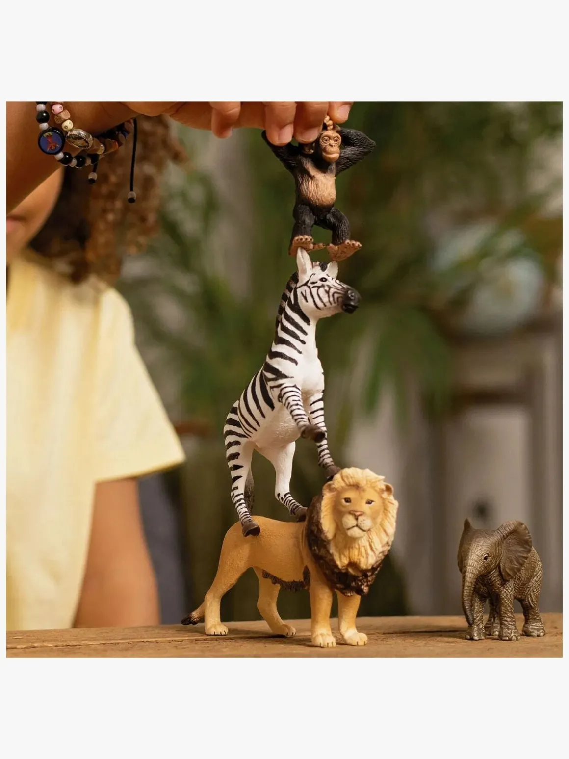 – Indeholder: 1 zebra, 1 elefant, 1 løve, 1 abe.