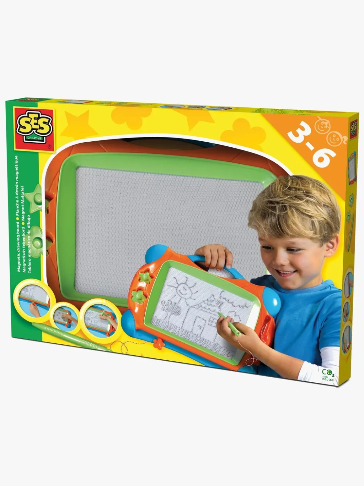 – Tegn med den magnetiske pen, eller lav sjove kunstværker med stemplerne.