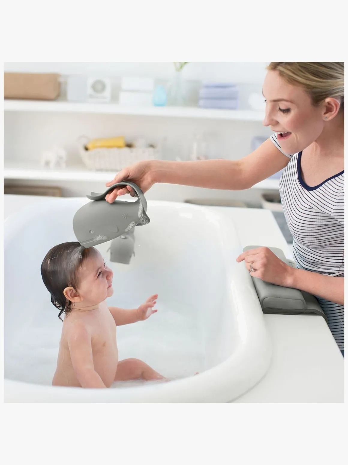 På kanden er der kanaler, der lader vandet løbe i en kontrolleret strøm, så du undgår sæbeskum i øjnene. Hæng kanden op, når den ikke bliver brugt.