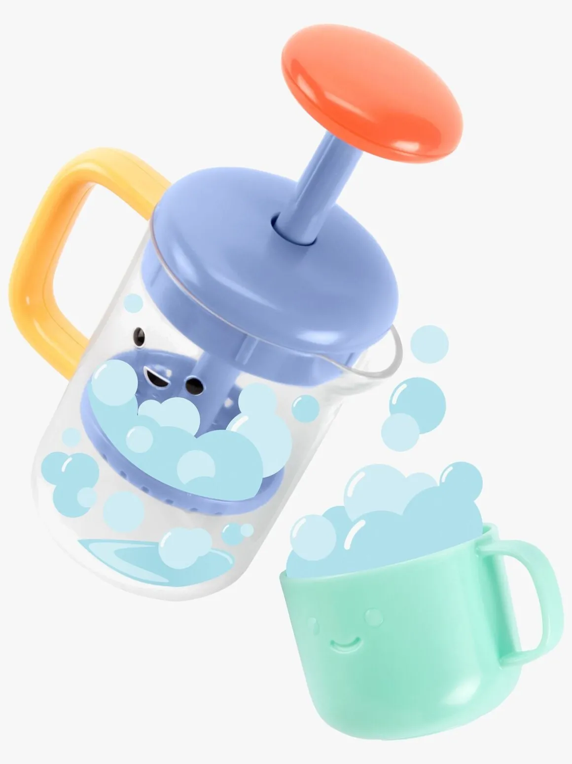 – Hæld sæbevand i skummeren og tryk ned for at lave skummende bobler.