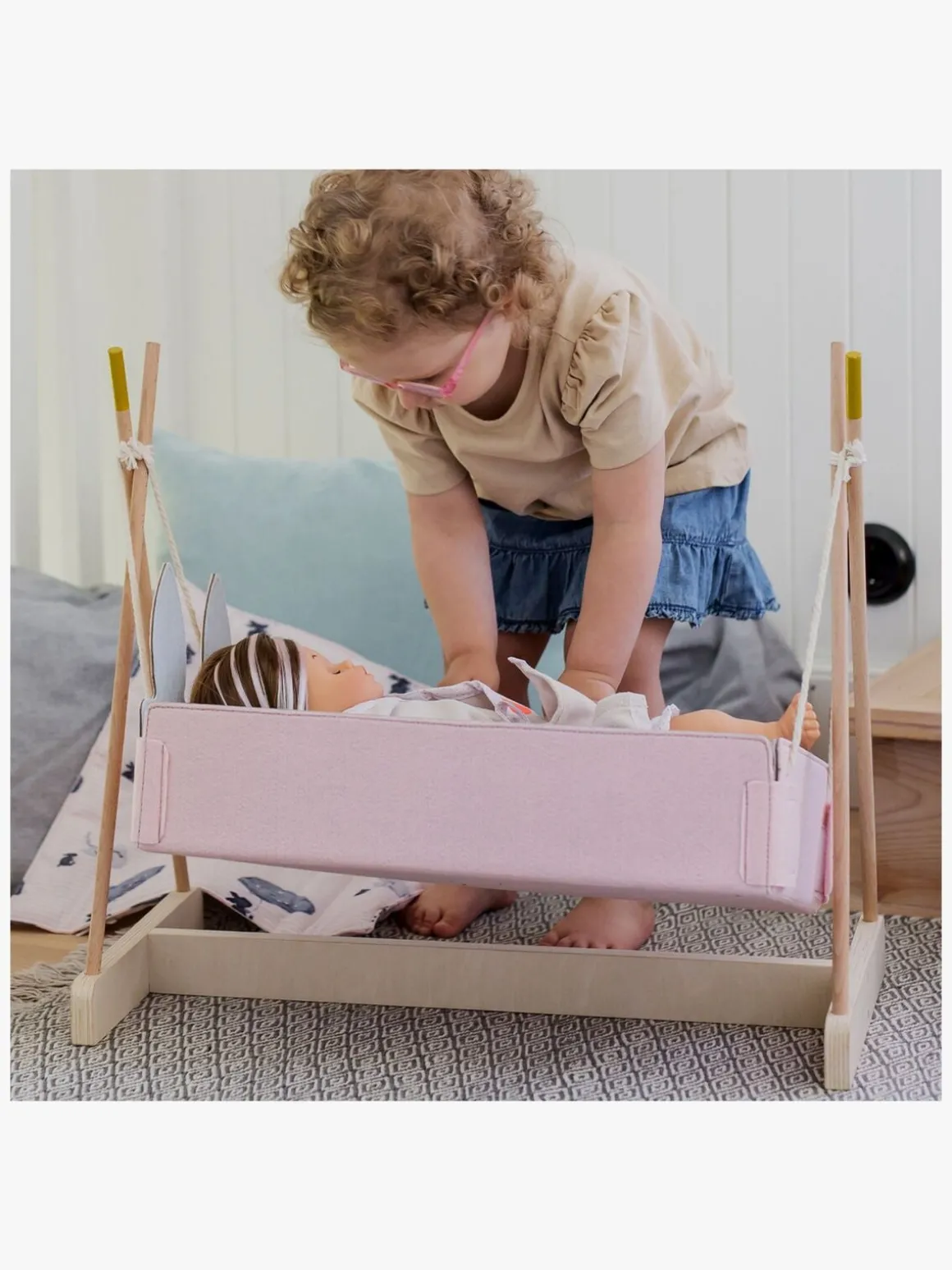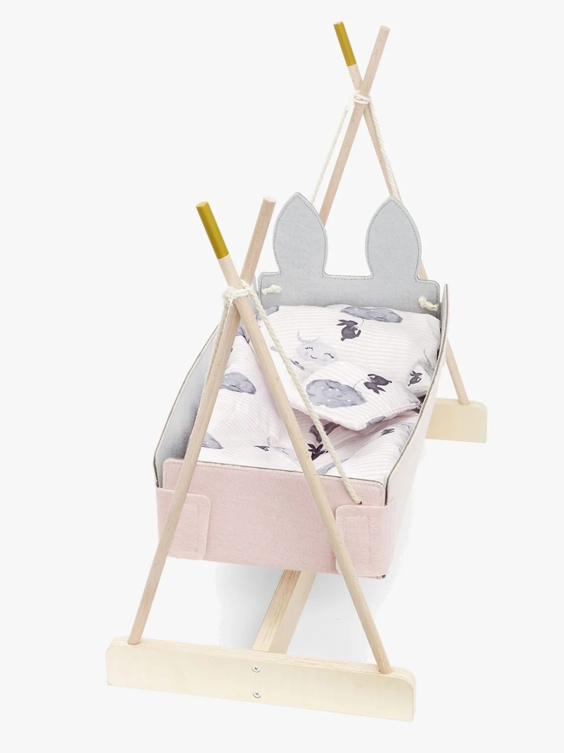 OBS! Dukke og sengetøj til vuggen købes separat.