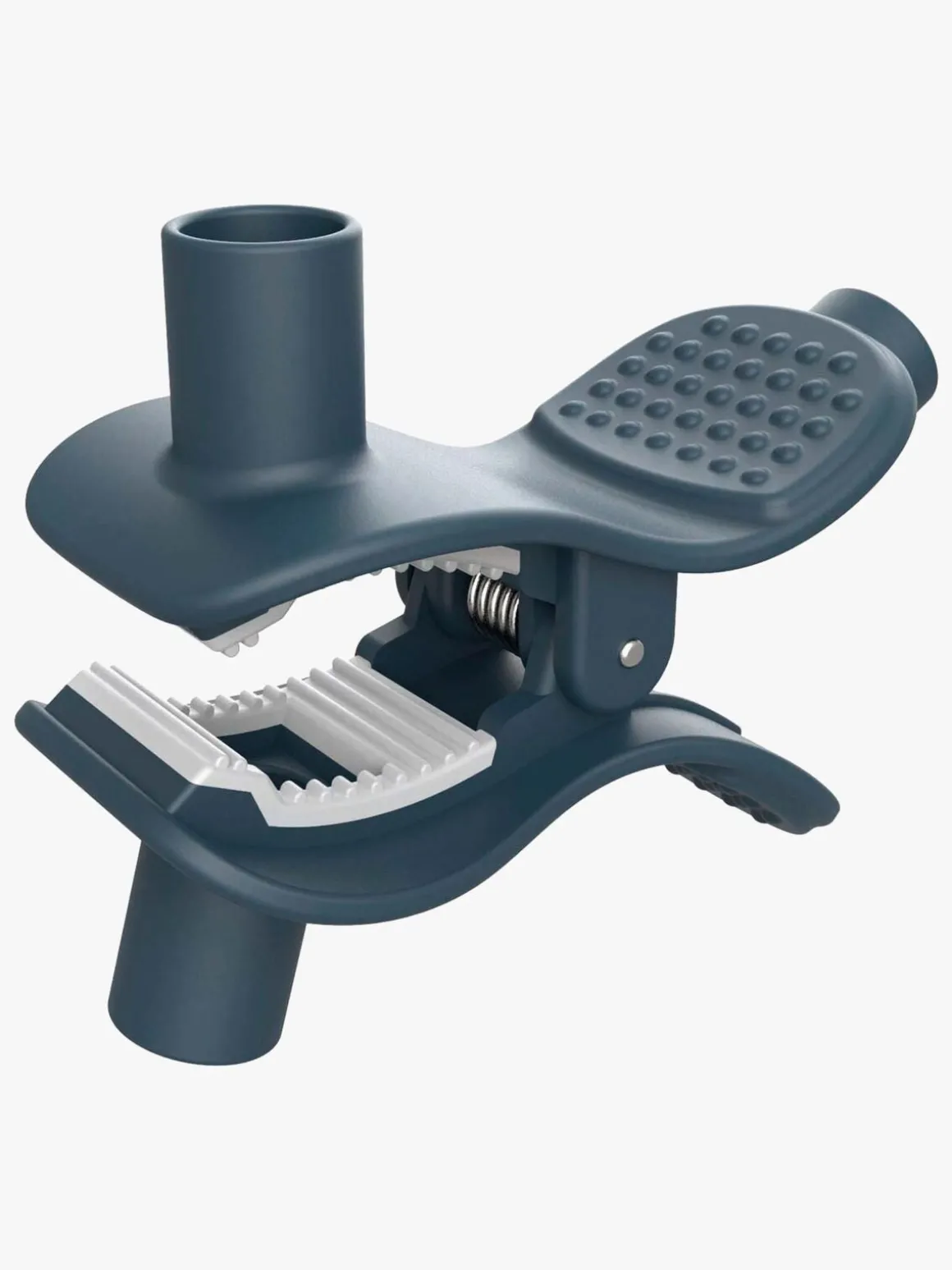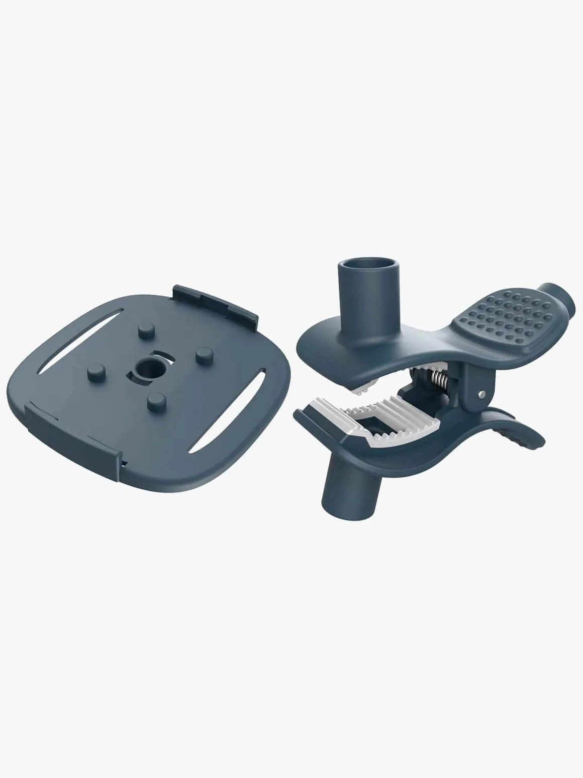 Multigrebsklemmen gør det muligt at sætte banen fast på mange forskellige ting, som fx borde, gardiner, hylder, stole, garderober, lagen, stænger osv. Klemmen kan sættes fast på forskellige måder og kan bruges med op til tre spor samtidigt.