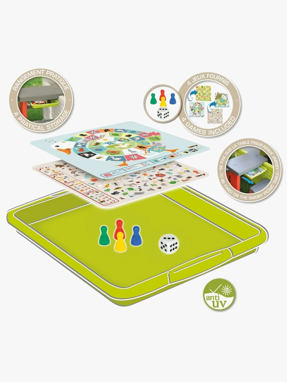 – Fastgøres på Smoby Neo Jura picnicbord (sælges separat).