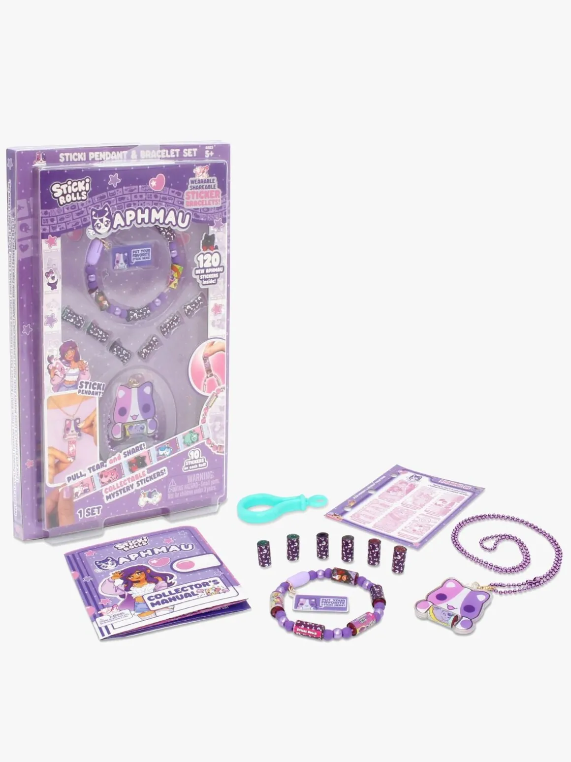 – Indeholder: 120 klistermærkeruller, 1 armbånd med 18 perler, 1 halskæde, 1 nøglebrik, 1 samlerguide, 1 Aphmau Sticki side.