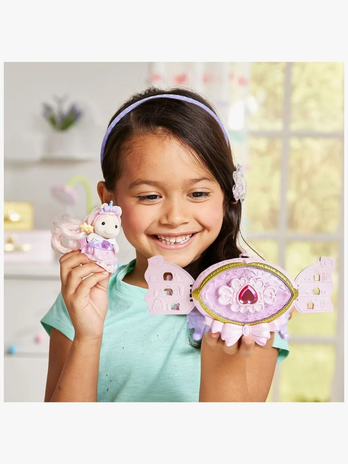 – Indeholder ponyfigur, kompakt sminkekommode, makeup, stol, enhjørningebånd, kam, to tasker, syv hårspænder, to hårtilbehør, parfumeflaske, fugtighedscreme, foundation, to øreringe og armbånd.