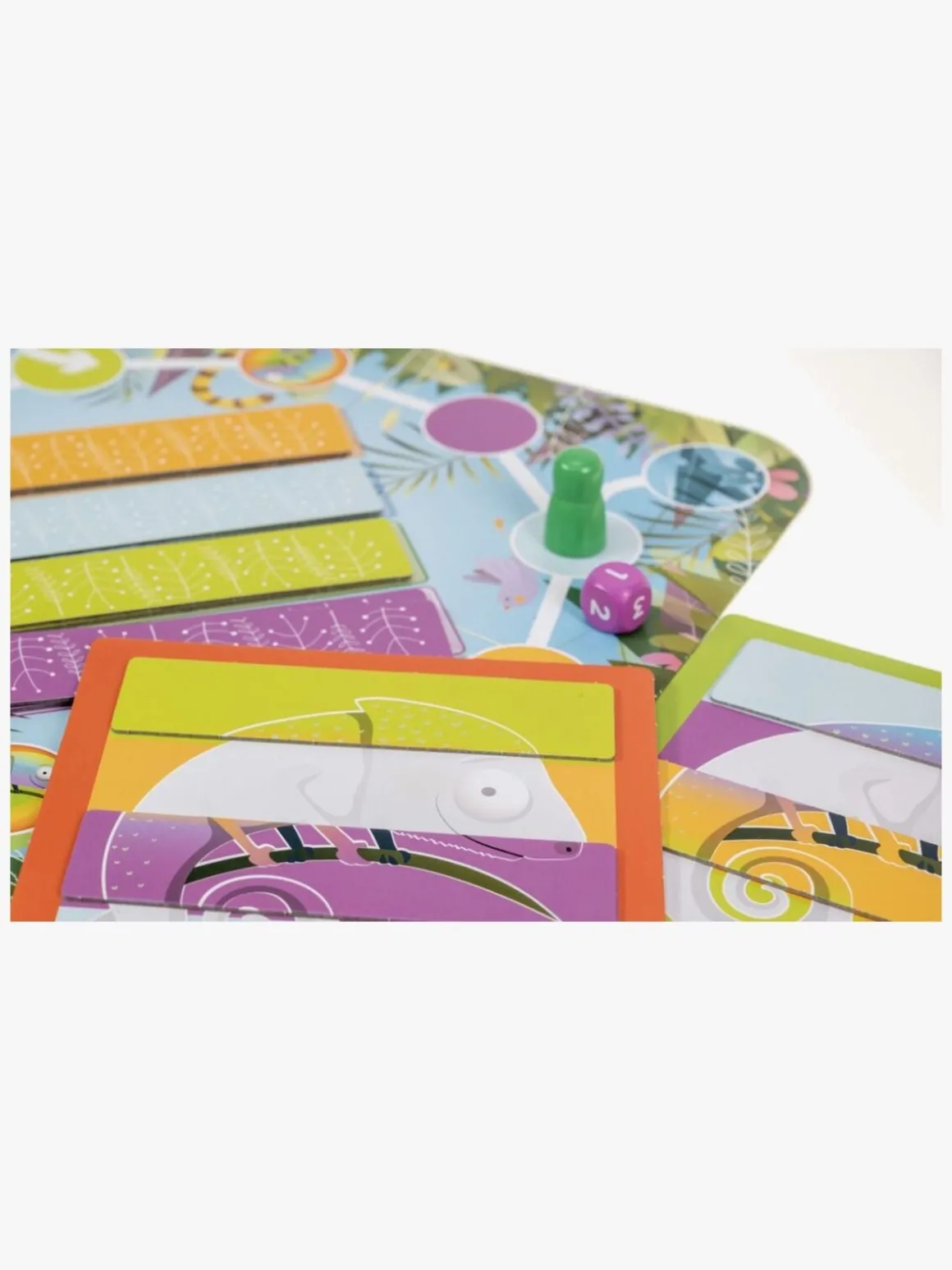 – Terning og store spillebrikker i træ.