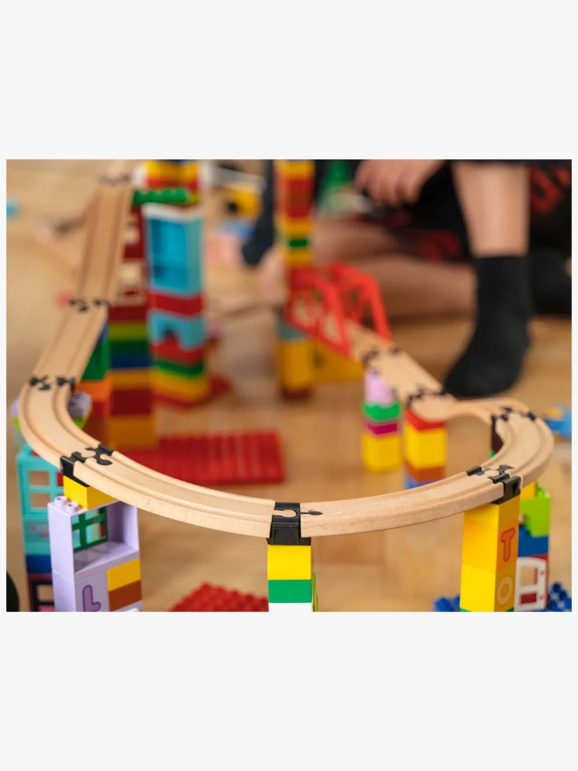 – OBS: Træskinnerne og byggeklodserne medfølger ikke.