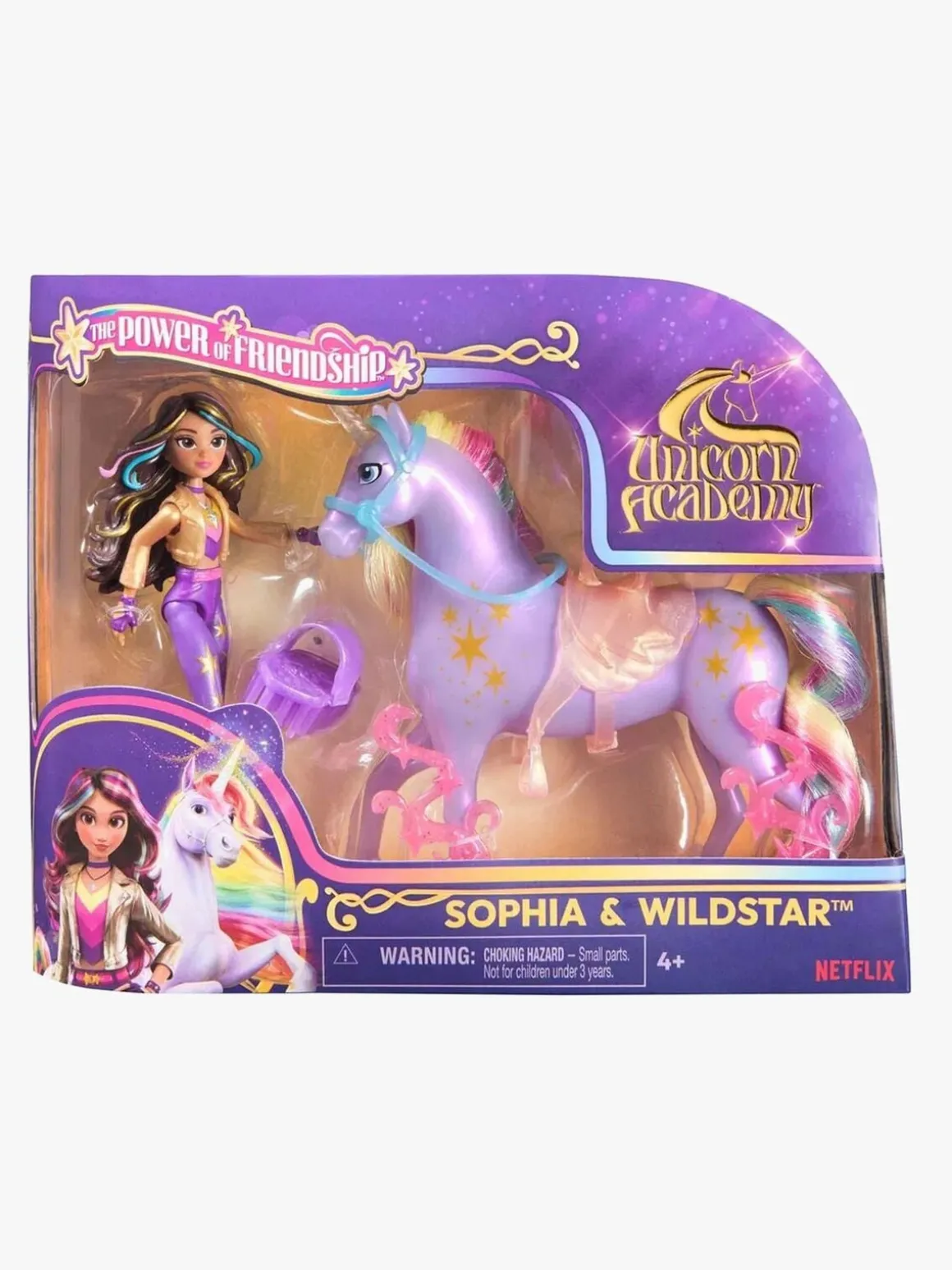 – Indeholder: 1 dukke, 1 enhjørning, 1 børste, 1 sadel, 1 hovedtøj.