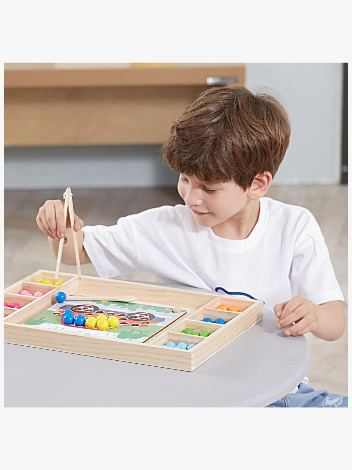 – Indeholder: 8 slags kugler, 10 billedkort, 2 pinde, 1 ske, 1 klemme.