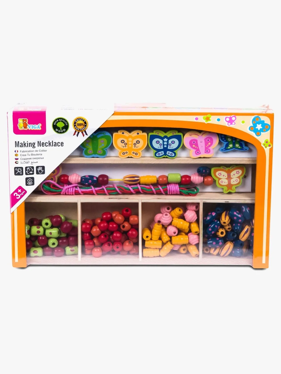 Du kan tilkøbe VIGA Træperler Flower og Heart for flere perler og kombinationer.