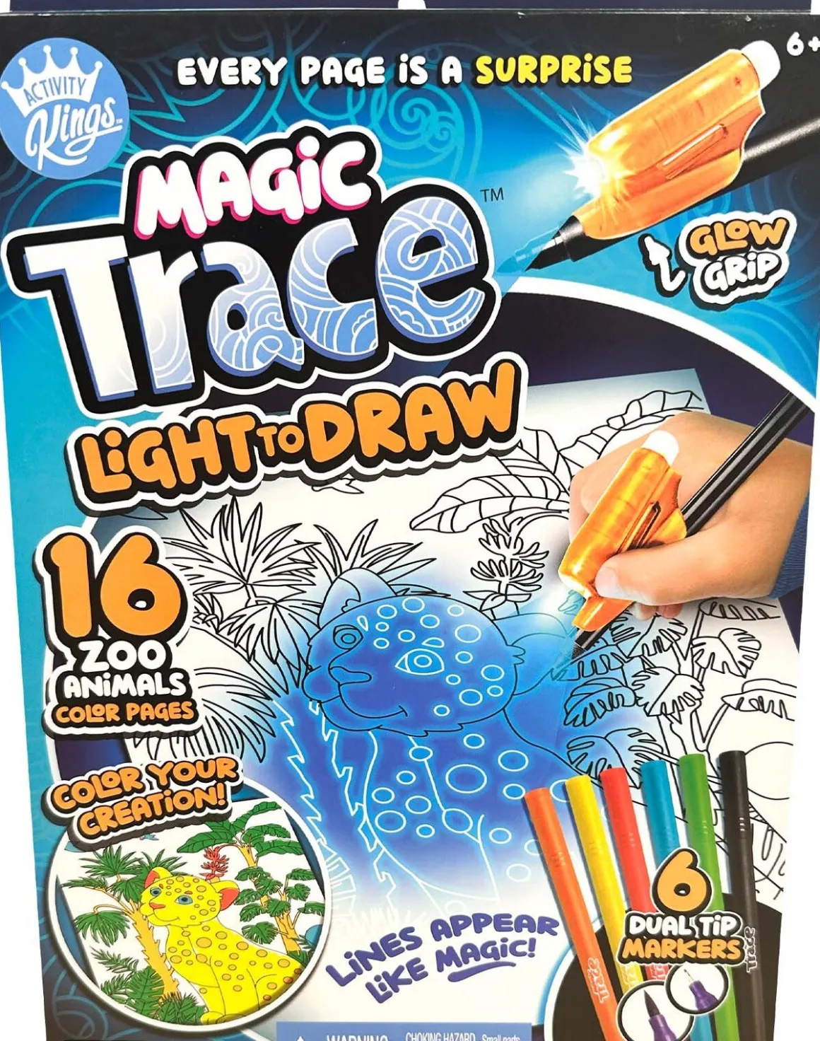 – Indeholder: 16 farvelægningssider, 1 Glow Grip, 6 fibertusser med dobbeltspidser.