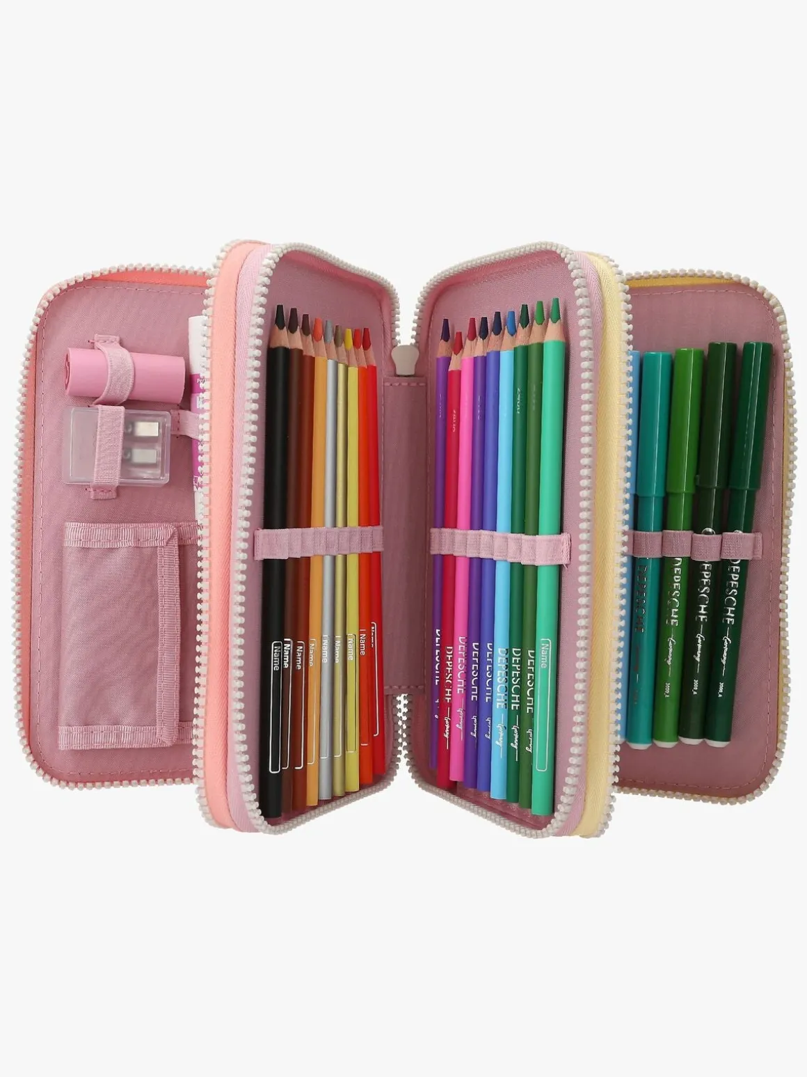 – Indeholder: 1 penalhus, 18 farveblyanter, 18 tusser, 2 blyanter, 1 saks, 1 limstift, 1 blyantspidser, 1 lineal, 1 viskelæder.